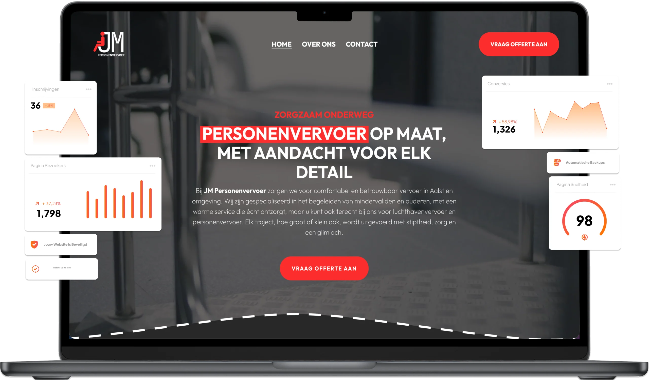 Hosting en premium plugins worden aangeboden via een jaarlijks pakket. Zo blijft je website snel, veilig en technisch up-to-date zonder dat je zelf iets moet opvolgen.